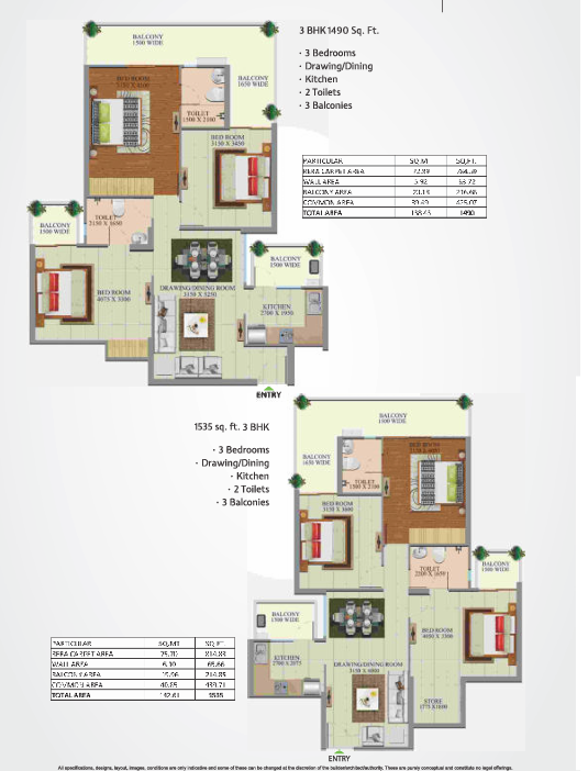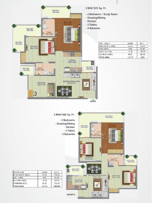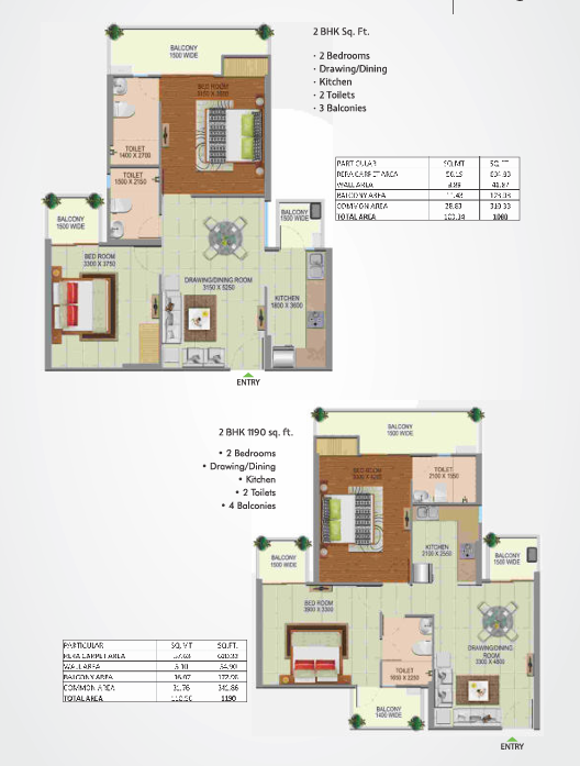 | Flooring: | Vitrified tiles in Drawing Room, Kitchen & Bedroom, Ceramic tiles in balconies and bathroom |
